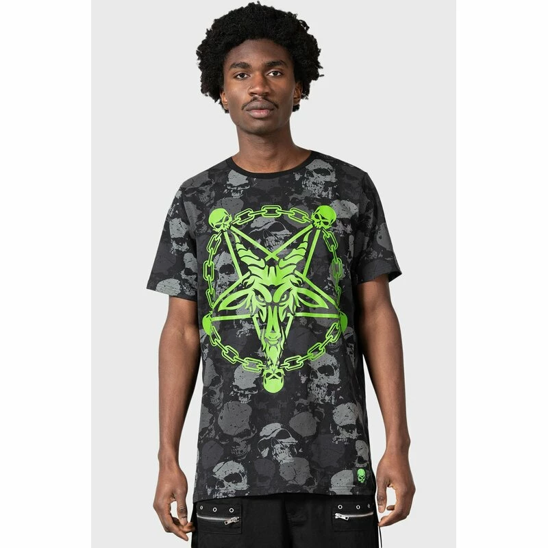 – Imprimé pentagramme Baphomet vert fluo