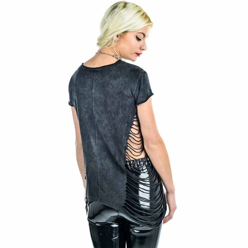 Le haut gris batik a un discret col en U et des fentes sur le côté. Parce qu’il est un peu plus long et a une belle coupe aérée, il peut être combiné avec des leggings et est un véritable accroche-regard pour le festival d’été.